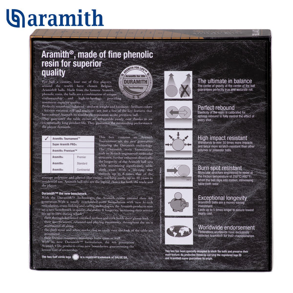 - The Aramith Tournament set features the Duramith™ technology with its hi-tech engineered molecular structure enhancing drastically the longevity of the balls while minimizing significantly table cloth wear