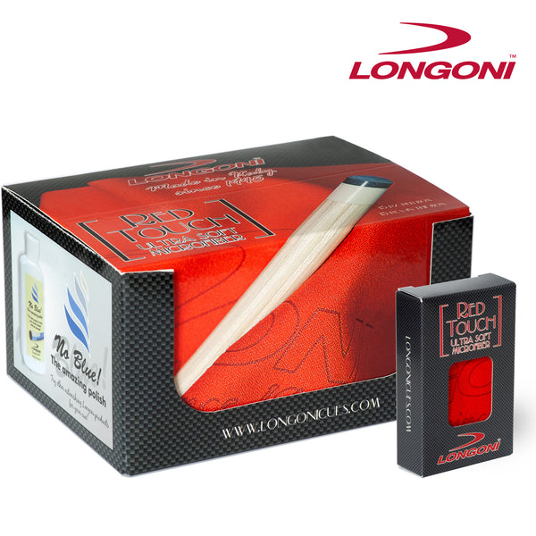 - Longoni ultra-soft microfiber cloth "Red Touch" is suitable for cleaning cues, shafts, balls and more