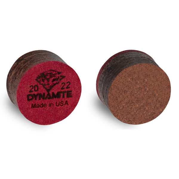 This hard cue tip is a very consistent cue tip with good control. Dynamite® laminated cue tip is made out of seven layers of pig leather and treated to a specific hardness naturally. Laminated with VACULAM™ process, Dynamite® cue tip is the best priced laminated cue tip for its quality and durability. This tip is the ideal tip for cue makers and manufacturers as the standard tip for their line of cues. When you play with Dynamite® laminated cue tip, IT BLOWS THE COMPETITION AWAY!!