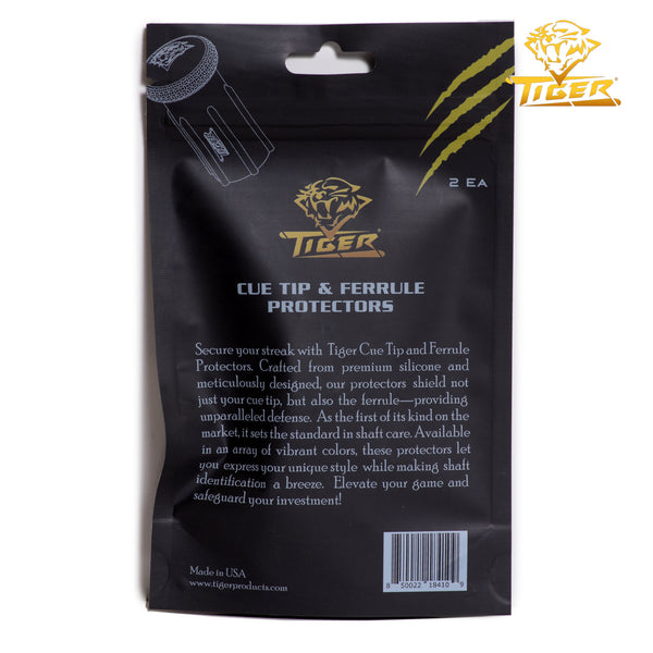 Protect your cue investment with the Tiger Cue Tip & Ferrule Protectors (2-Pack) — the first protectors on the market designed to shield both the cue tip and the ferrule. Made from high-grade silicone, these flexible guards slip on easily and provide a secure cushion against impacts, dirt, moisture, and accidental damage.